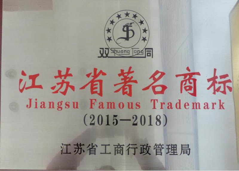 江蘇省著名商標(biāo)證書(shū)