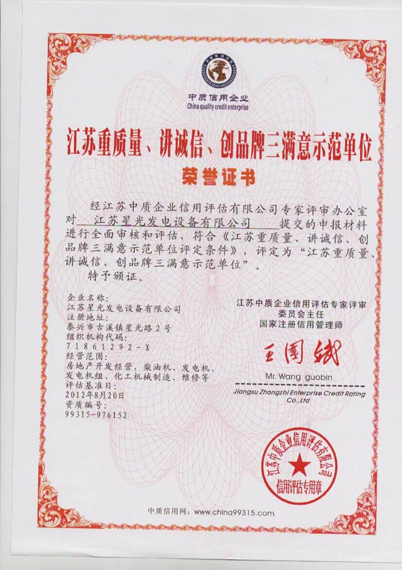 江蘇重質(zhì)量、講誠(chéng)信、創(chuàng)品牌三滿(mǎn)意示范單位榮譽(yù)