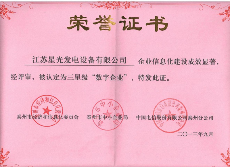 三星級(jí)“數(shù)字企業(yè)”榮譽(yù)證書(shū)、泰州市誠(chéng)信單位榮
